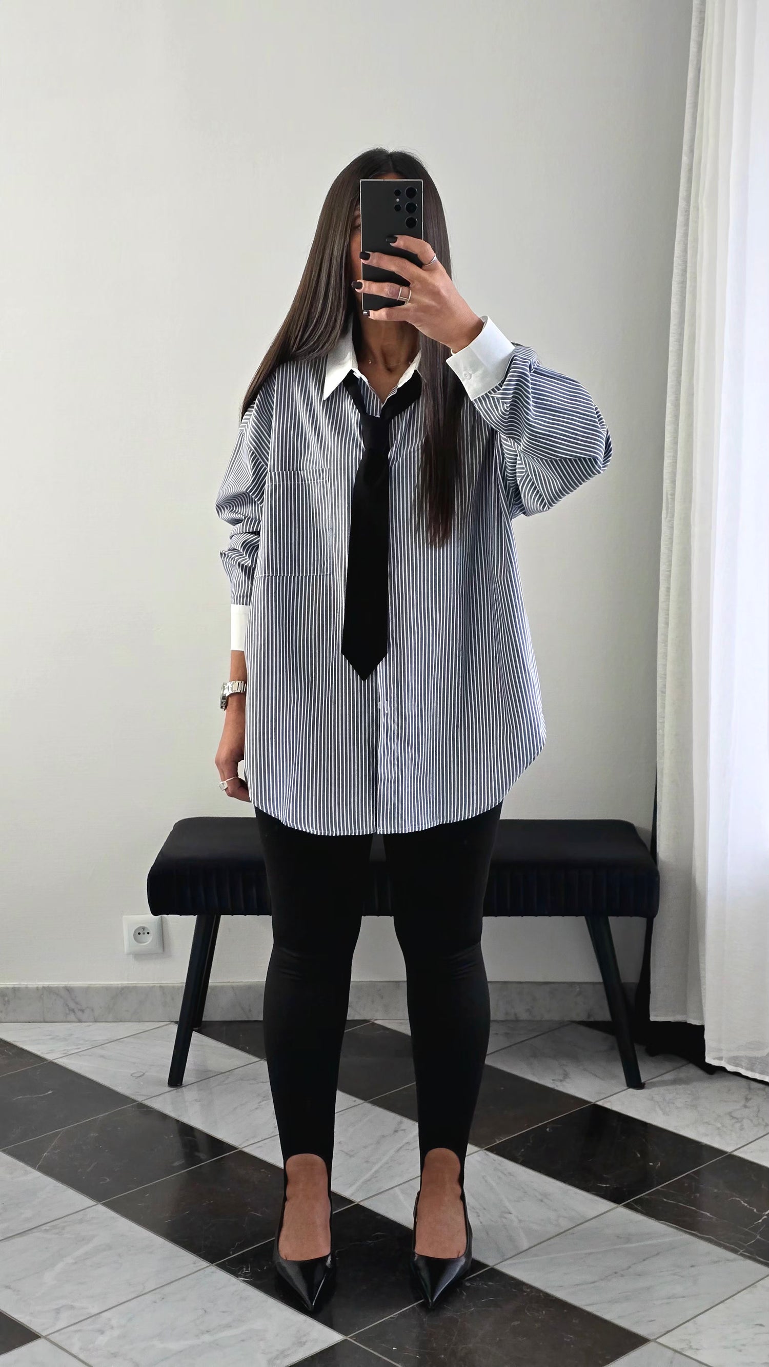 Victime de son succèsChemise rayée avec cravate amovible – esprit tailoring chic