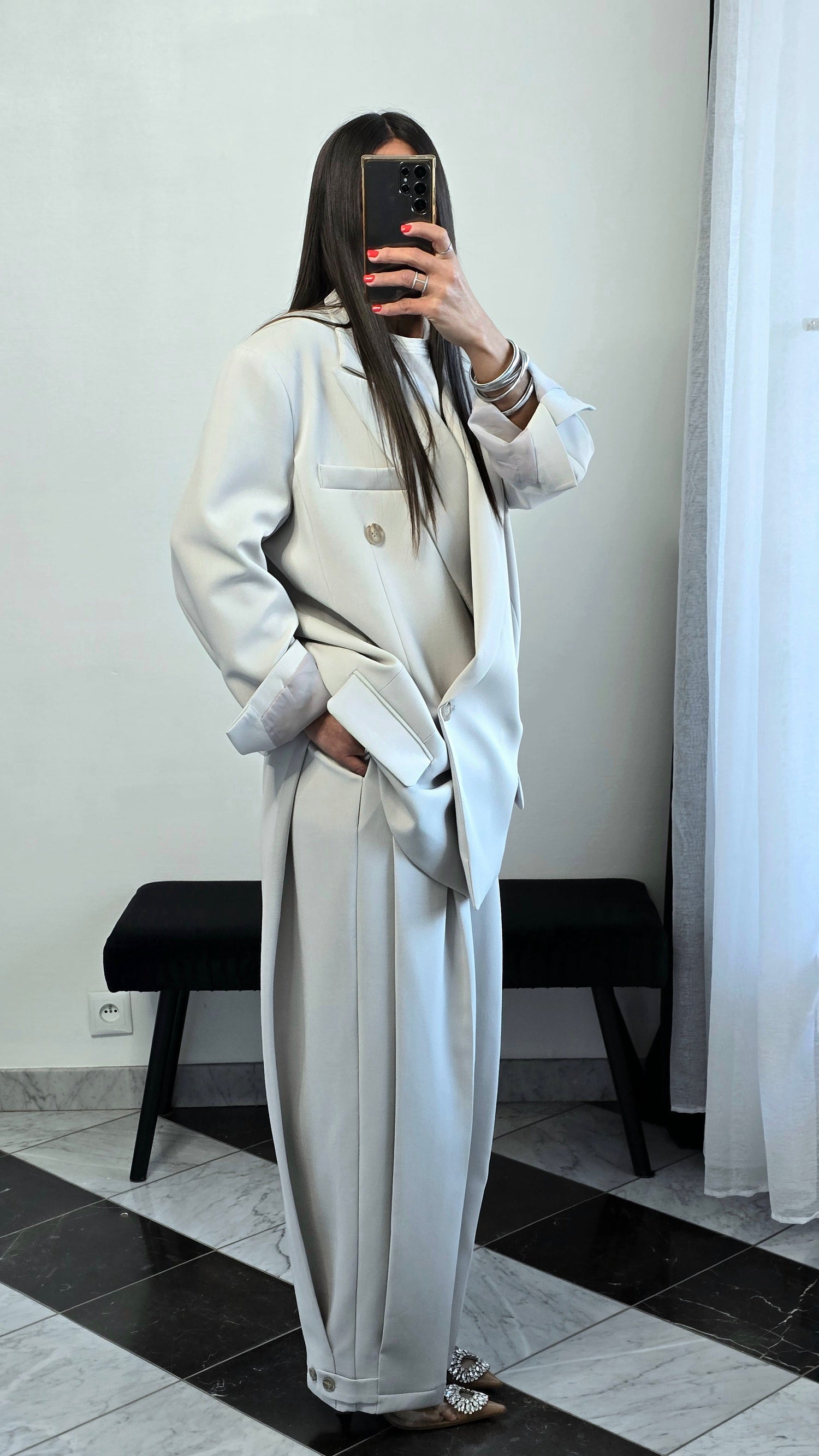 Blazer oversize gris clair – coupe tailoring structurée & double boutonnage
