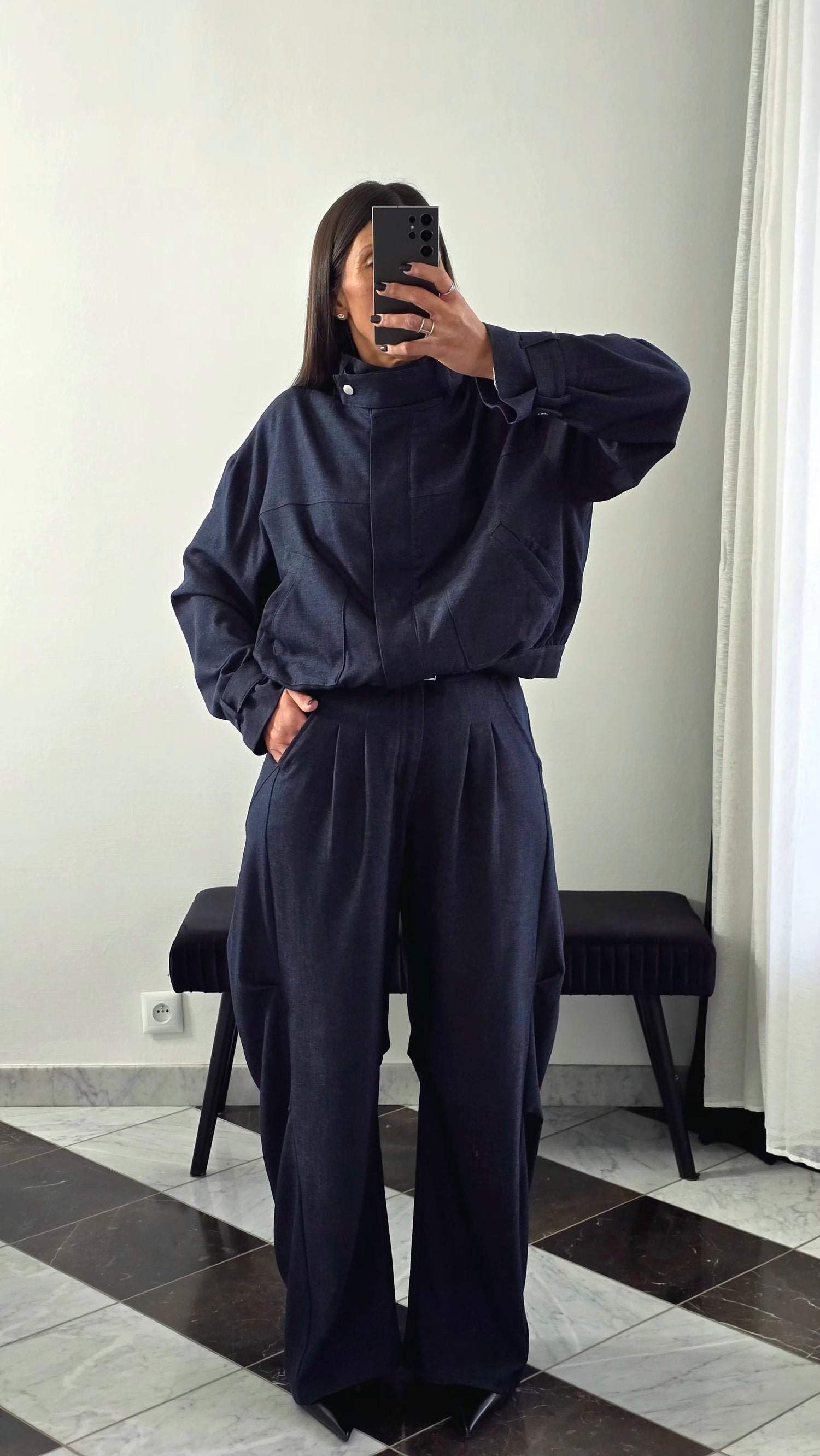 Ensemble confort structuré – veste courte & pantalon large