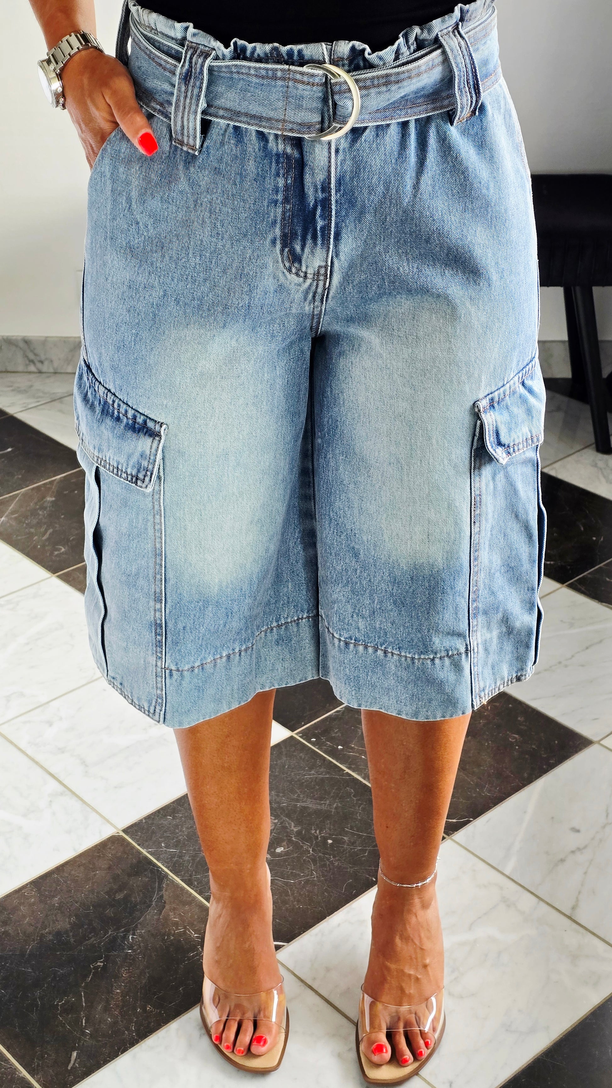 Bermuda cargo ceinturé – Détail paperbag