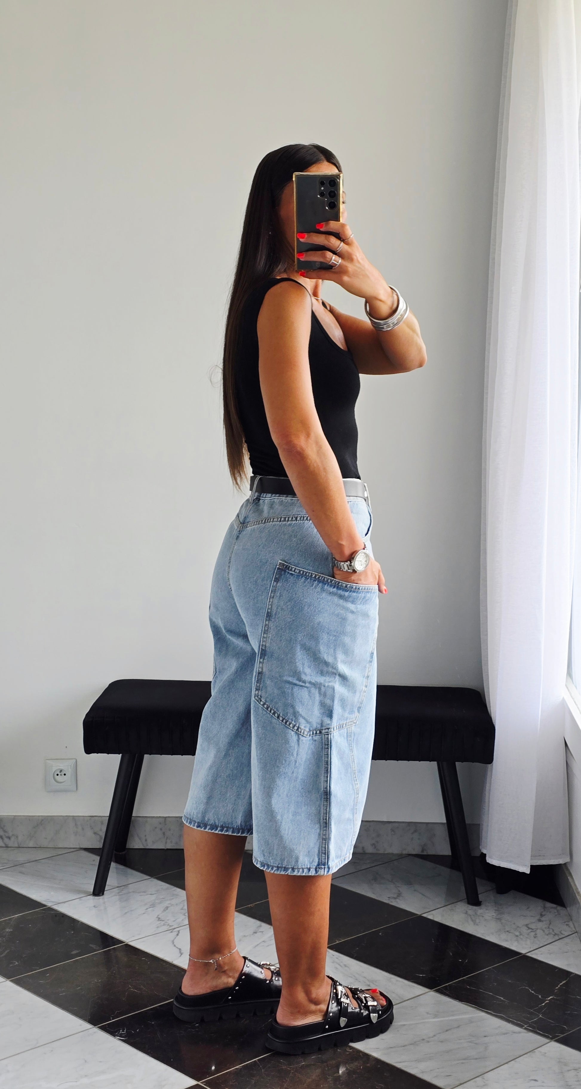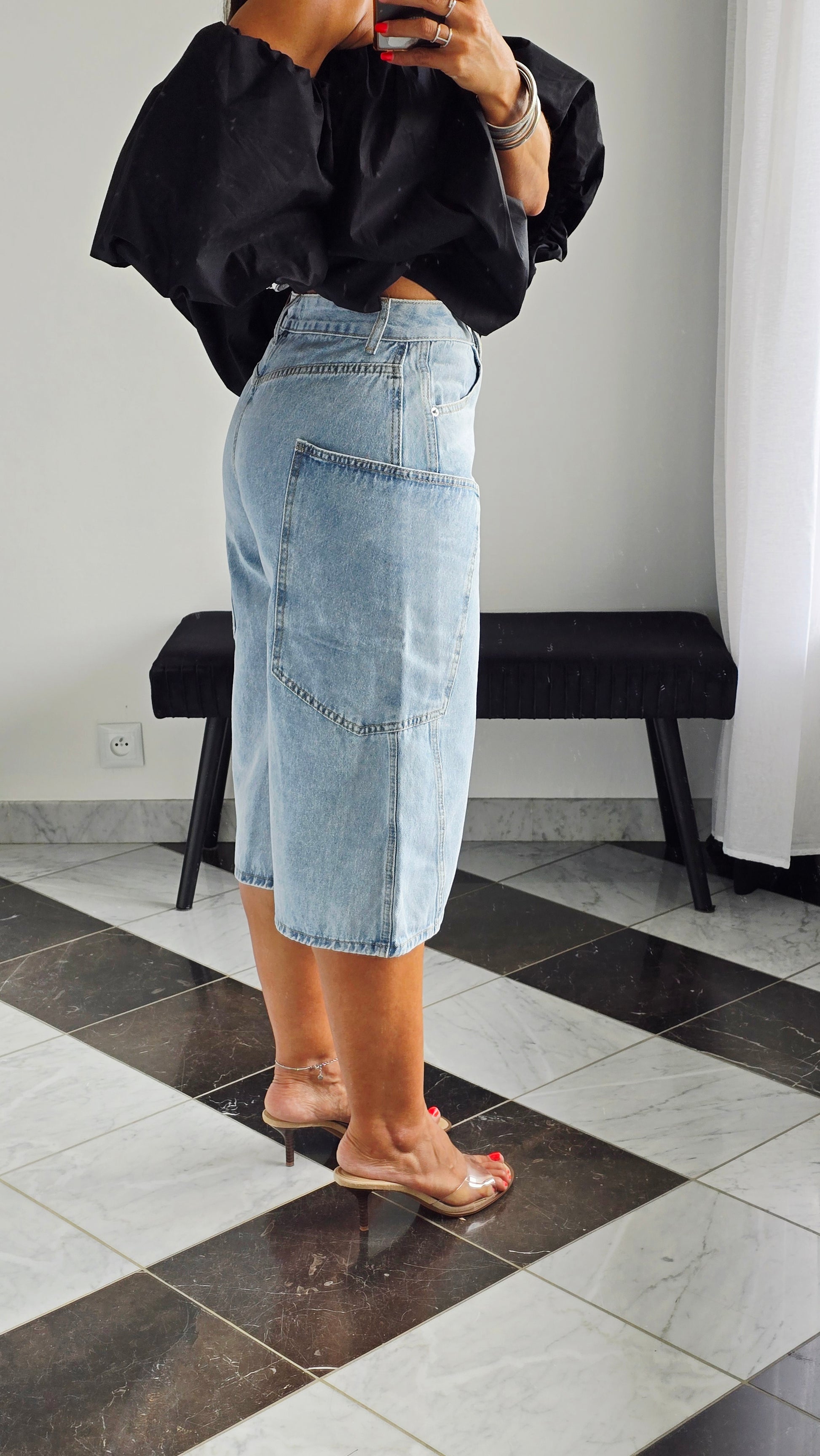 Le bermuda en jean parfait pour un look à la fois cool, stylé et confortable. Avec sa coupe ample inspirée du cargo et ses grandes poches plaquées sur les côtés, il apporte une touche urbaine ultra moderne à vos tenues estivales. Taille haute, il galbe la silhouette tout en laissant une belle liberté de mouvement.