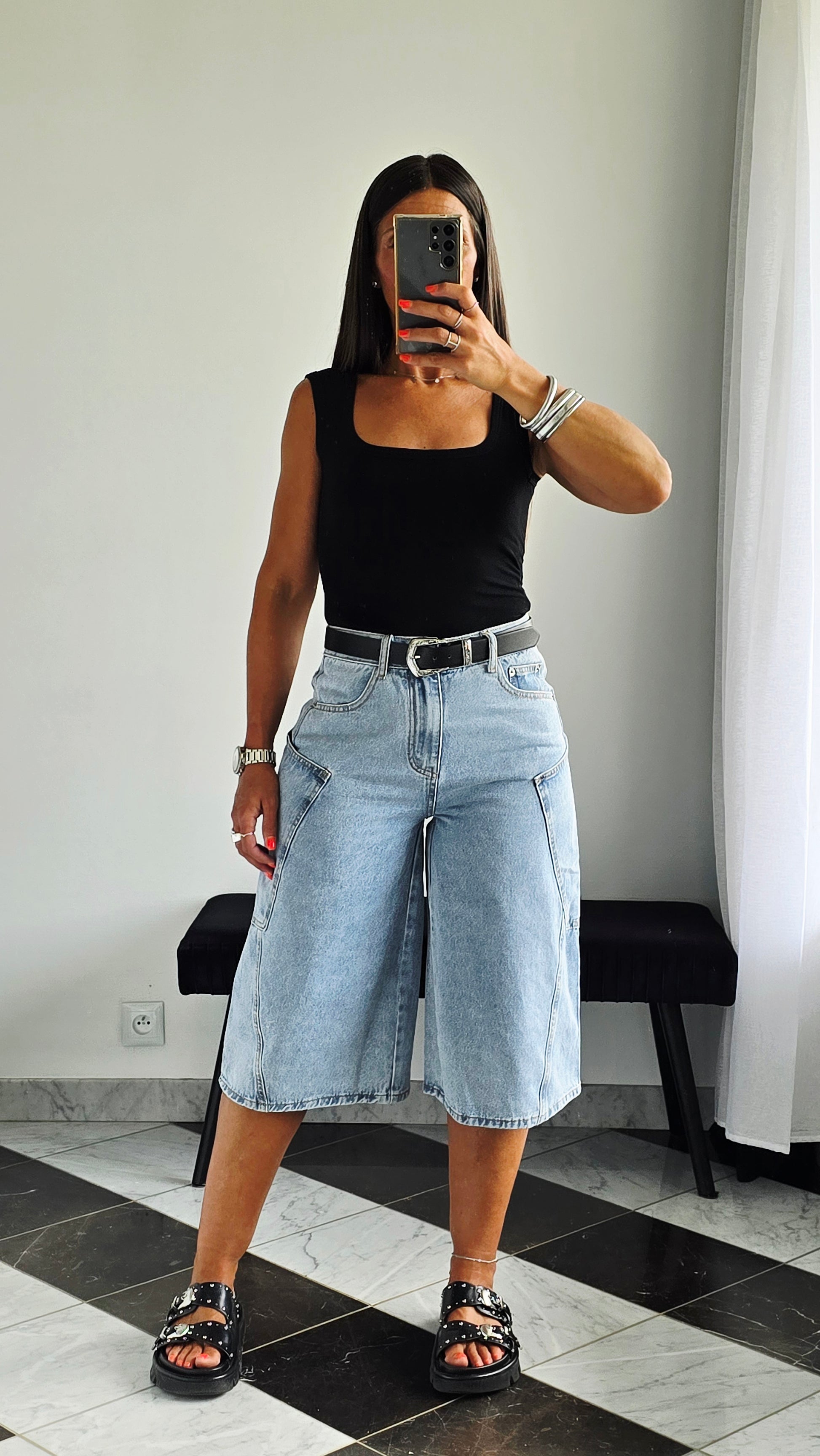 À porter avec un débardeur, une chemise nouée ou un t-shirt rentré pour un look effortless et affirmé.