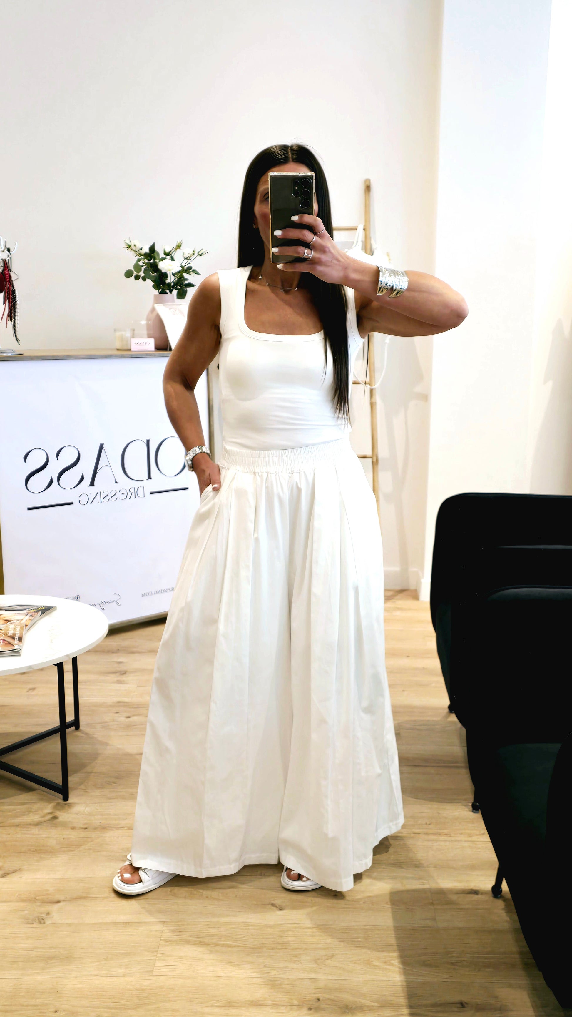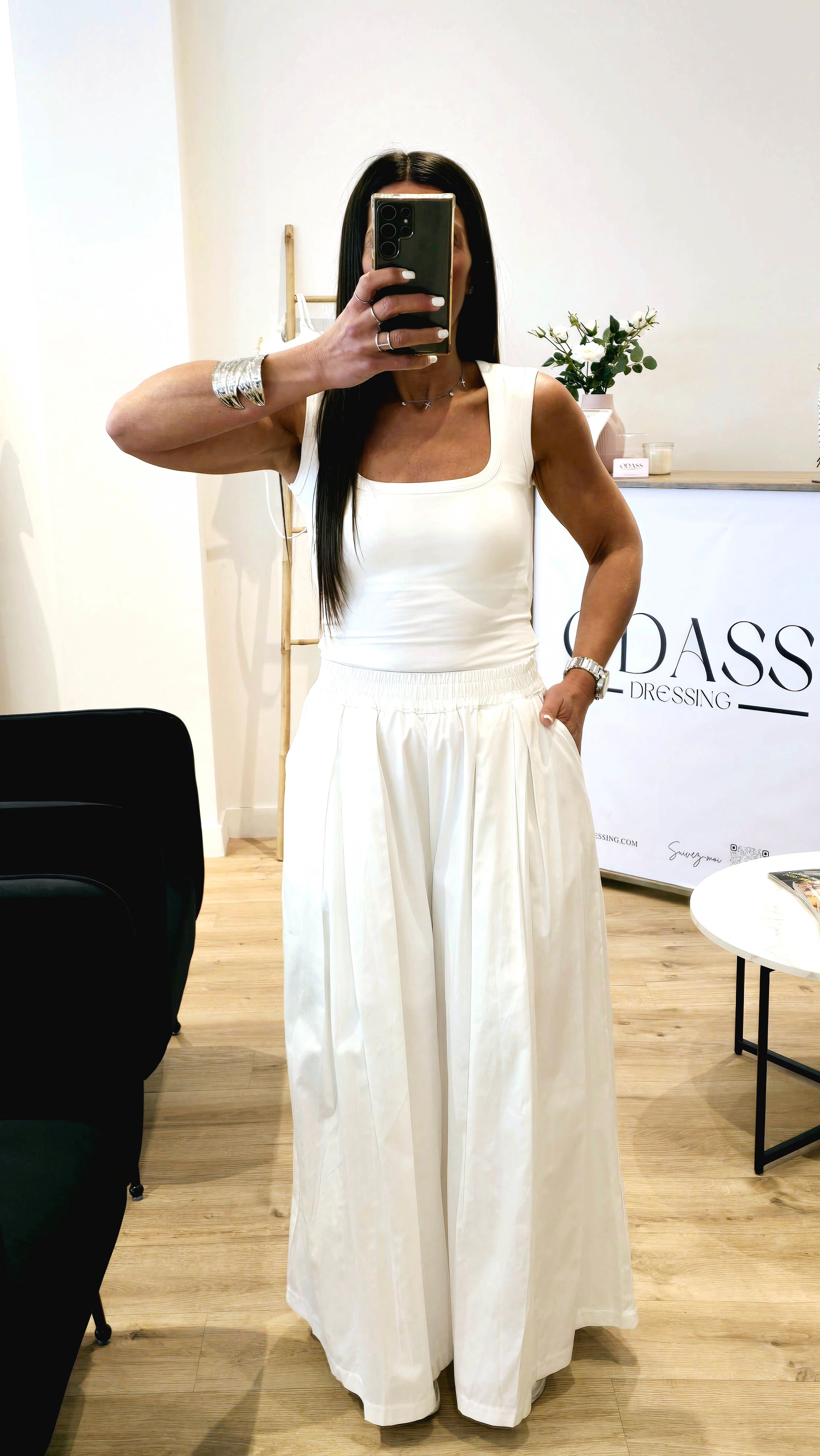 L'indispensable du dressing estival ! Ce débardeur blanc cassé à encolure carrée vous offre un confort ultime grâce à sa matière ultra-douce et extensible. Son secret ? Deux coussinets intégrés qui remplacent le soutien-gorge pour une liberté totale et un maintien naturel. Léger, épuré et flatteur, c’est le basique chic à adopter sans hésiter.